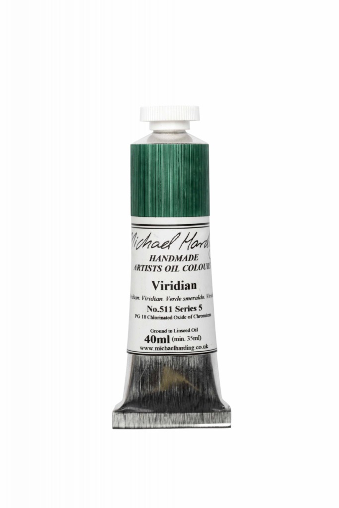 Michael Harding Viridian oil Handgjord oljefärg av premiumkvalitet. Högst pigmenttäthet på marknaden, inga fyllnadsämnen eller konsistensgivare. Omkring hundra kulörer, över 70% singelpigment, sju serier av vilka två tredjedelar är serie 1 och 2 (de billigaste). Flera mycket ovanliga pigment. Ob, 40 ml tub, c:a 10% mer än konkurrenter på 37 ml.