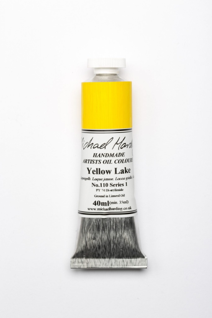 Michael Harding Yellow lake oil. Arylide Yellow är en av de äldsta organiska lakepigmenten. Den här varianten är varmare än Bright Yellow Lake men har liknande egenskaper. Färgen är transparent men har stark färgstyrka. Den ger milda och gyllene undertoner i blandningar.