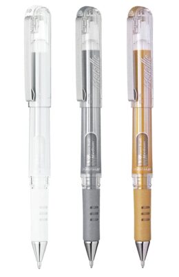 Hybrid Gel Grip har ett gelbläck med metallic-effekt som ser fantastiskt ut på svart eller färgat papper. Pennan passar perfekt till både skrift och dekorationer. Täckande vit,guld och silver hybrid gel, syrafri