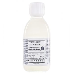 Sennelier fernissa Matte painting varnish. Slutfernissa av syntetisk harts. Ger en färglös och tålig yta. Torkar snabbt. Blanda blank och matt fernissa i olika proportioner för att få fram en satineffekt utan att tappa färgstyrka. vi rekommenderar ett tunt lager satinfernissa,innan du applicerar den matta