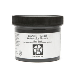 Watercolor Ground Mars Black Daniel Smith (Akvarellgrund). En unik akvarellgrund som ger dig möjligheter att använda dina fantastiska akvarellfärger mycket mer än bara akvarellpapper. Måla på canvas, keramik glas, trä m.m. Daniel Smiths akvarellgrund ger dig som akvarellmålare nya och mer spännande möjligheter att utforska. Måla två lager och låt härda över natt eller för bäst resultat 24h. Akvarellgrunden går även att använda som strukturpasta om du vill skapa djup och textur i dina målningar. Blanda akvarellfärg i akvarellgrunden om du få en matchande färg till bakgrunden. Möjligheter är stora med Daniel Smtihs akvarellgrund.