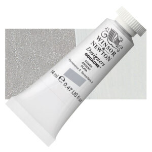 Winsor & Newton Silver Designers Gouache (Mica Based).  Silver är en speciell färg som skapar en metallisk glans som liknar silver på grund av dess unika kombination av pigment. Denna färg är användbar för att återskapa metalliska ytor eller för att ge en silverliknande effekt i konstverk och illustrationer. Det är en populär färg inom målning och konstnärliga projekt för att skapa realism eller för att lägga till visuell intresse och dimension till verk.
