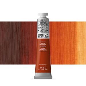 Winton Burnt sienna oljefärg 200ml är ett rikt brunt pigment tillverkat av Burning Raw Sienna. Uppkallad efter Siena i Italien, där Pigmentet hämtades under renässansen, är det ett transparent Pigment med rödbruna toner.