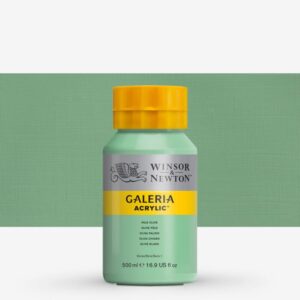 W&N Galeria Pale Olive acrylic vattenbaserad akrylfärg från Winsor & Newton. Galeria Akrylfärg är en underbar tjock akrylfärg som bevarar penseldrag vid målning. Det gör att den är skräddarsydd för konstnärer som använder mycket färg och vill ha en stabil produkt som de kan lita på och som är prisvärd. Winsor & Newton Galeria akrylfärg har hög pigmenthalt, hög opacitet (opacitet) och beständighet. Akrylfärg är en tjock pasta som bevarar penseldrag vid målning. Galeria akrylfärg 500ml – 60 färger gör W&N Galeria akrylfärg till en konkurrenskraftig akrylfärg på marknaden. Alla Galeria akrylfärger är graderade AA eller A, förutom Opera Rose, och som vi rekommenderar för användning av konstnärer. Det betyder att de har god livslängd och ljusbeständighet. Winsor & Newton har otroligt höga ambitioner vilket har gjort dem till en stor aktör i artistvärlden. W&N Galeria Pale Olive acrylic