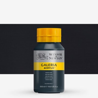 W&N Galeria Paynes Gray acrylicacrylic vattenbaserad akrylfärg från Winsor & Newton. Galeria Akrylfärg är en underbar tjock akrylfärg som bevarar penseldrag vid målning. Det gör att den är skräddarsydd för konstnärer som använder mycket färg och vill ha en stabil produkt som de kan lita på och som är prisvärd. Winsor & Newton Galeria akrylfärg har hög pigmenthalt, hög opacitet (opacitet) och beständighet. Akrylfärg är en tjock pasta som bevarar penseldrag vid målning. Galeria akrylfärg 500ml – 60 färger gör W&N Galeria akrylfärg till en konkurrenskraftig akrylfärg på marknaden. Alla Galeria akrylfärger är graderade AA eller A, förutom Opera Rose, och som vi rekommenderar för användning av konstnärer. Det betyder att de har god livslängd och ljusbeständighet. Winsor & Newton har otroligt höga ambitioner vilket har gjort dem till en stor aktör i artistvärlden. W&N Galeria Paynes Gray acrylic
