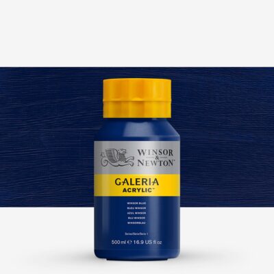 Winsor&Newton Galeria Winsor Blue acrylic. Winsor Blue är en djupt intensiv blå färg som, när den är outspädd, bildar en bläckblå-svart nyans. Den är gjord av det moderna pigmentet Phthalocyanine, som introducerades på 1930-talet.